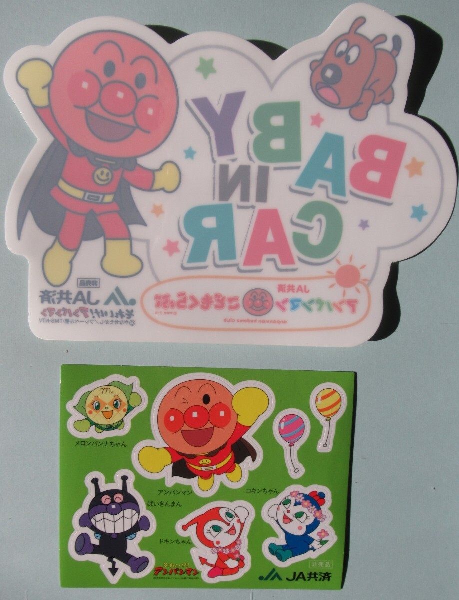 - JA共済 アンパンマン ステッカー/シール 2種セット 車窓用「BABY IN CAR」他 /送料無料 非売品 メロンパンナちゃん ドキンちゃん