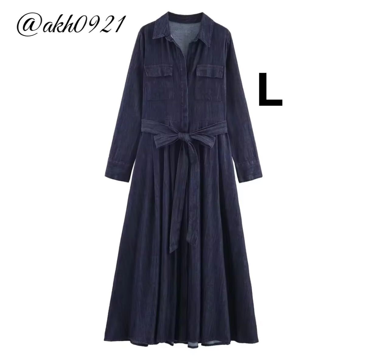 - 新品未使用★2025 A/W 秋新作★vintage ヴィンテージ レトロ デニム ロング ワンピース Lサイズ レディース★ZARA 好きな方に
