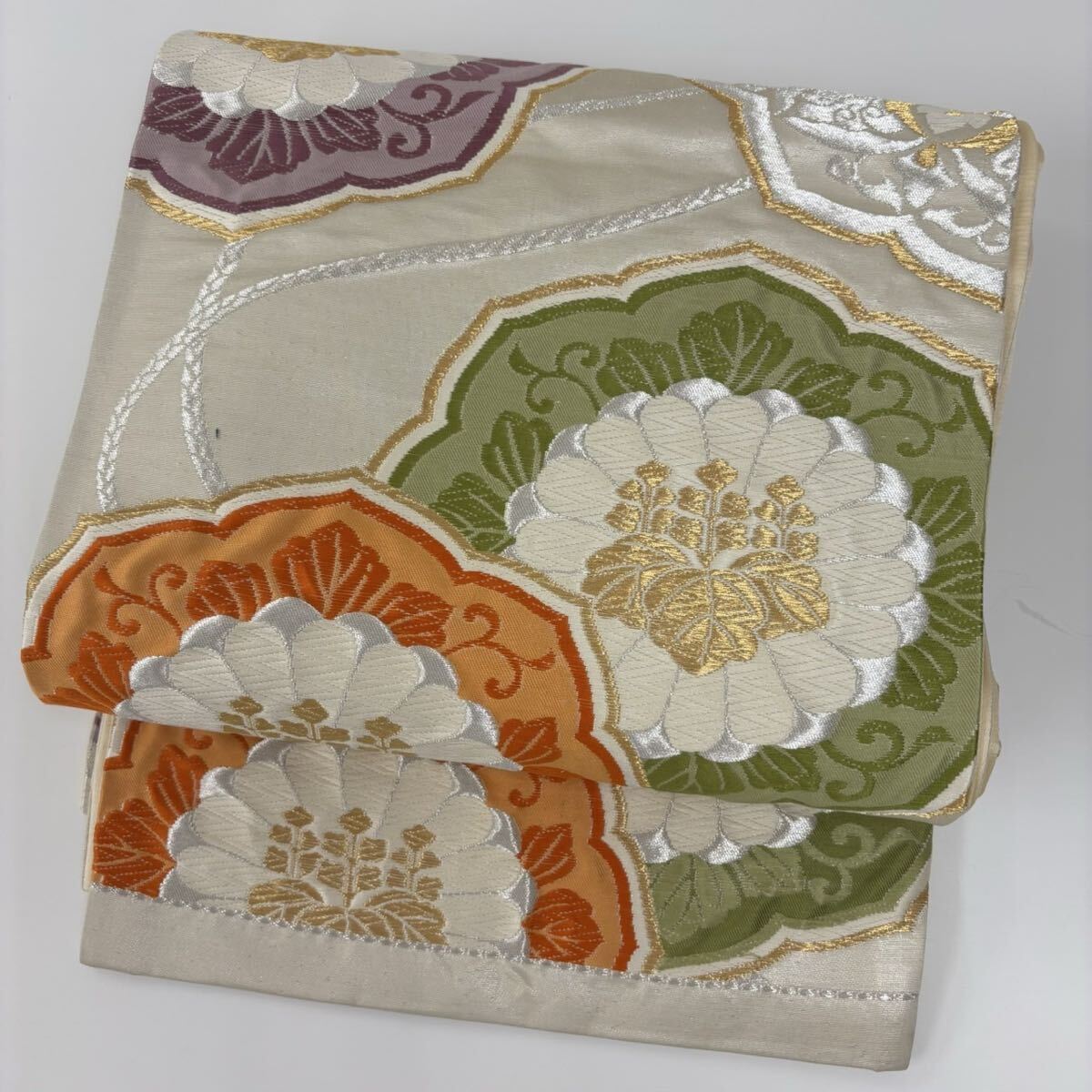 - 袋帯 美しい花 唐織 金彩 正絹 W-4370