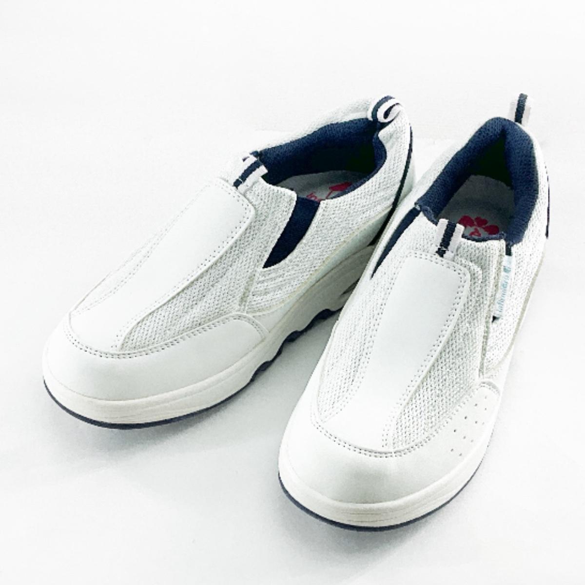 - 訳あり スリッポン 舟底スニーカー ナースシューズ Lサイズ 24.0~24.5cm ホワイトxネイビー