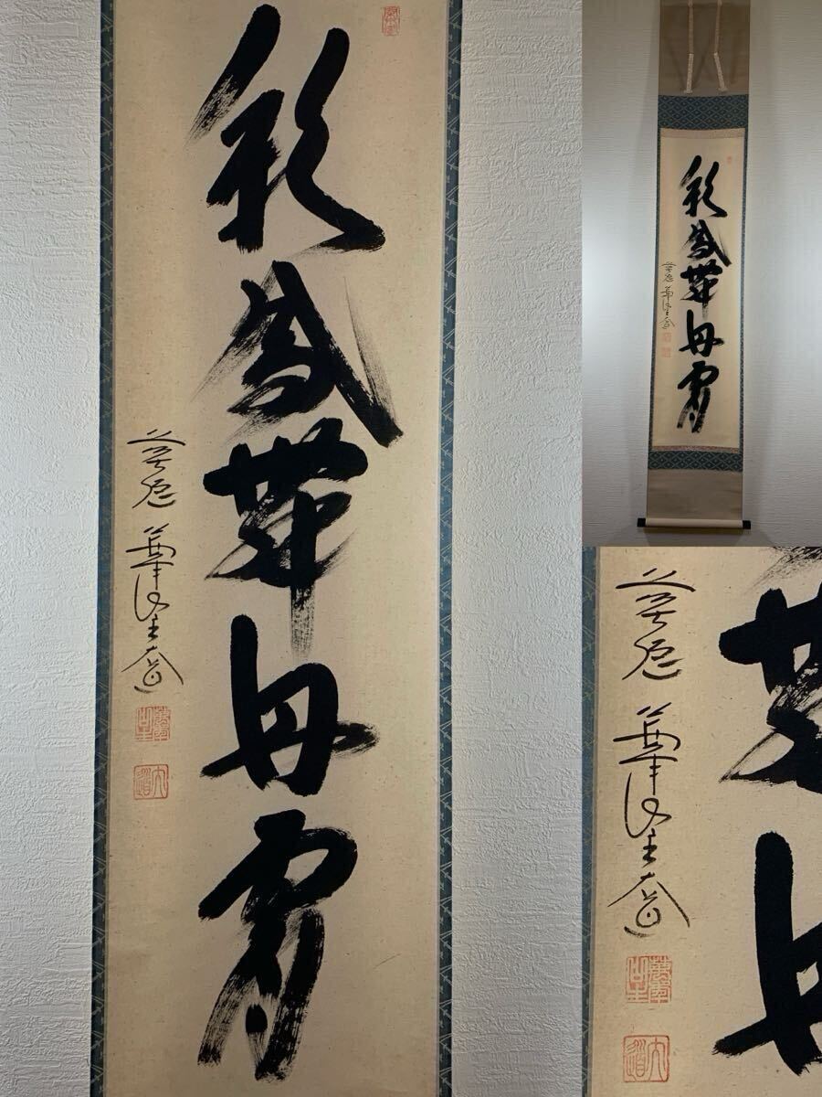 - ★真作保証★掛軸 茶掛け 大道老師 筆 彩鳳舞丹霄 縦175cm×31cm 落款 現状品 ★745/flok★ee384