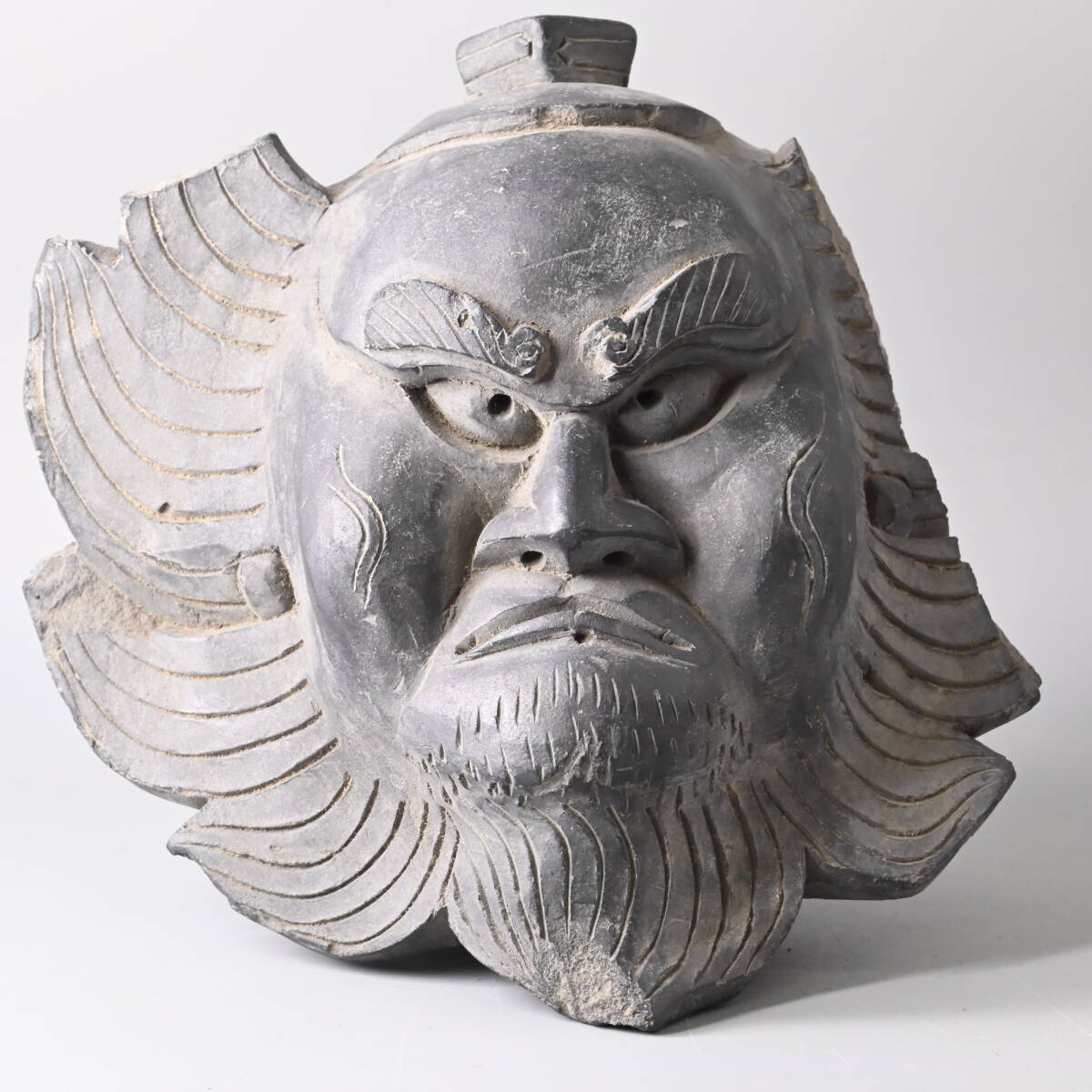 - 11511 鐘馗 瓦 足利国分寺 縦16cm 横15cm 奥行11cm 鬼瓦 厄除け 魔除け 骨董 古玩 オブジェ 店舗什器