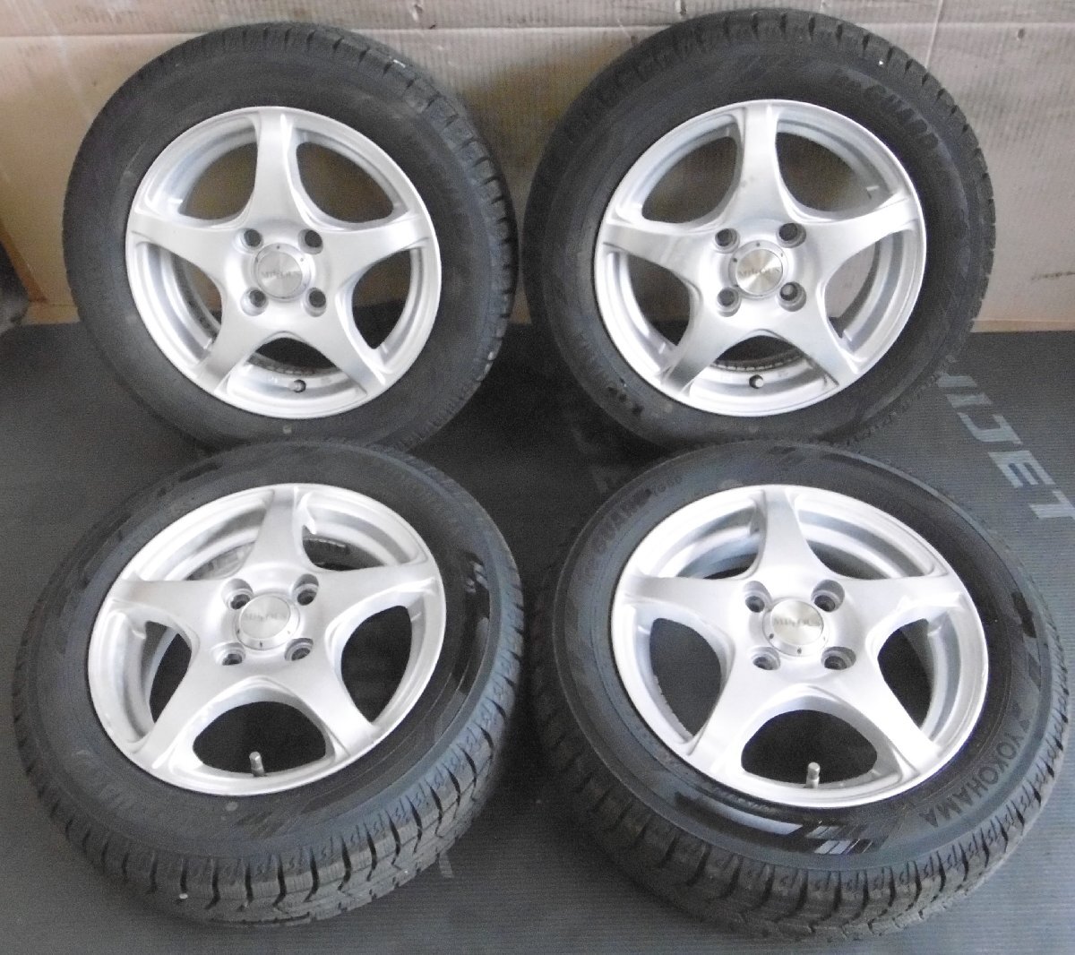 A3937 ☆7mm山 ■2023年■YFC MILLOUS ■13x4.5 PCD 100x4H +45■スタッドレス■YOKOHAMA ice GUARD iG60■155/65R13■ロゴ デミオ