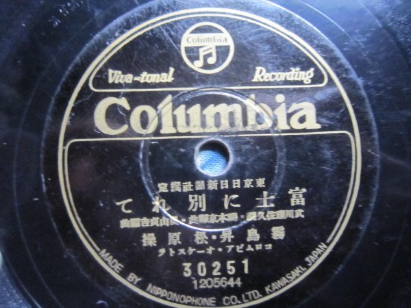 - コロムビア流行歌SP盤708★霧島昇、松原操/富士に別れて★二葉あき子/三国一の君じゃもの★古関裕而・作曲SPレコード