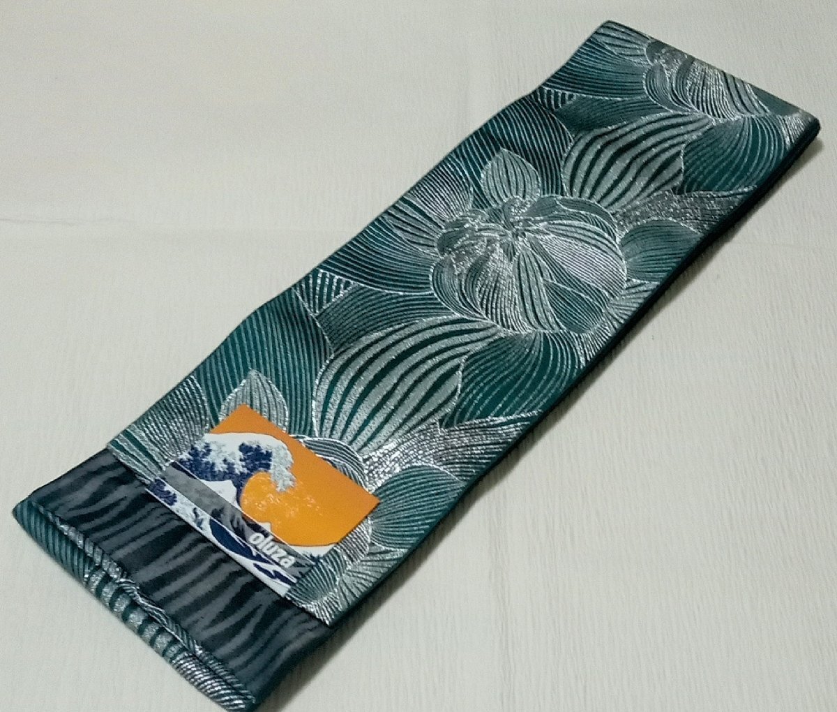 - 7861 両面半幅帯ロングサイズ【牡丹*セイジ】-
