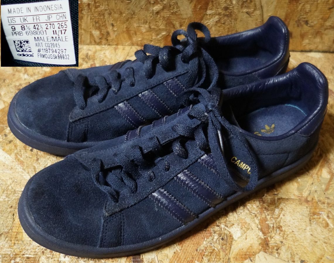- adidas CQ2045 本革スエード CAMPUS US9 27㎝ 紺/金 アディダス キャンパス