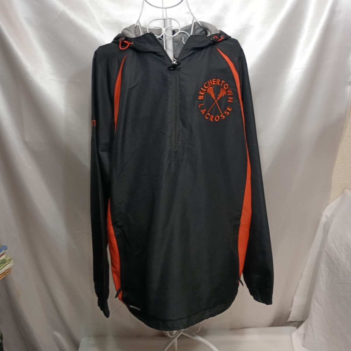 > zaa-144♪USユーズド★HOLLOWAY製ベルチャータウン・ラクロスンジャケット・ヤッケ★プルオン★ブラック/オレンジ US-M(日本M-Lサイズ)