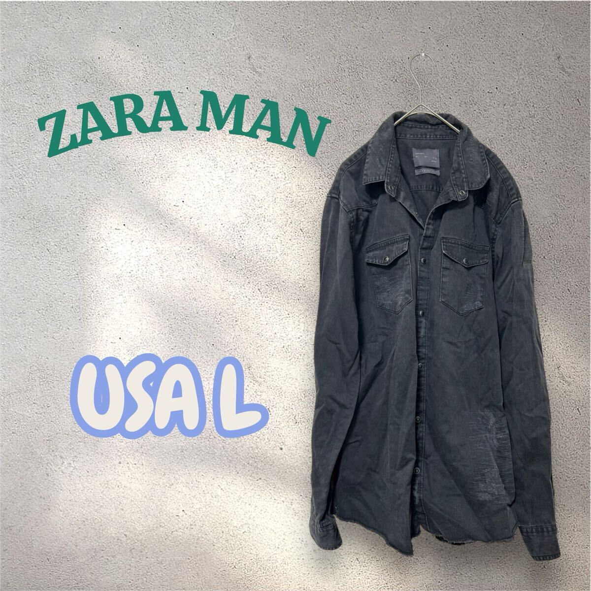 - ZARA MAN 1975 ヴィンテージデザイン ダメージ加工シャツ L