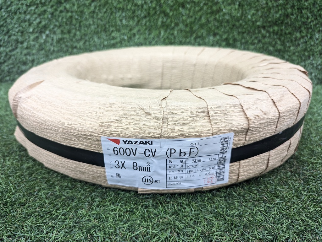 > ◇未使用品 YAZAKI 矢崎エナジーシステム CVケーブル 600V-CV(PbF) 3×8mm2 黒 50m 製造年月:2024.06