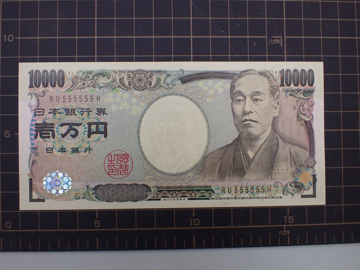 - 414-; (ゾロ目・ぞろ目 RU555555H) 日本銀行券E号 福沢諭吉 10000円・1万円札・紙幣 ピン札・折目無し (良番・珍番)★