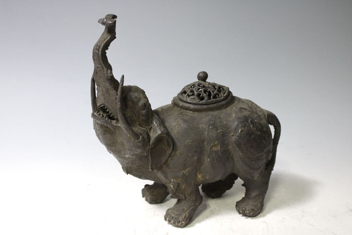 > 【英】B270 時代 銅象香炉 D26.5㎝ 中国美術 朝鮮 韓国 香道具 香爐 銅製 置物 骨董品 美術品 古美術 時代品 ow