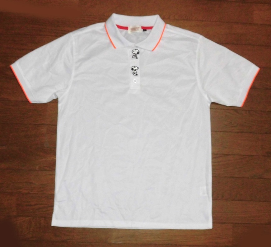 > PEANUTS ピーナッツ SNOOPY スヌーピー ポロシャツ 半袖 ドライ 刺繍デザイン 正規品 WHT L 使用少 美品/ジョー・クール ウッドストック