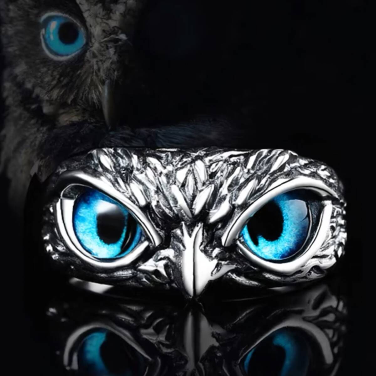 - 新品★送料無料★幸運フクロウ梟 視線見フリーサイズ青い瞳ブルー光925シルバーリング誕生日プレゼント旅行秋祭冬連休ギフト国内発送