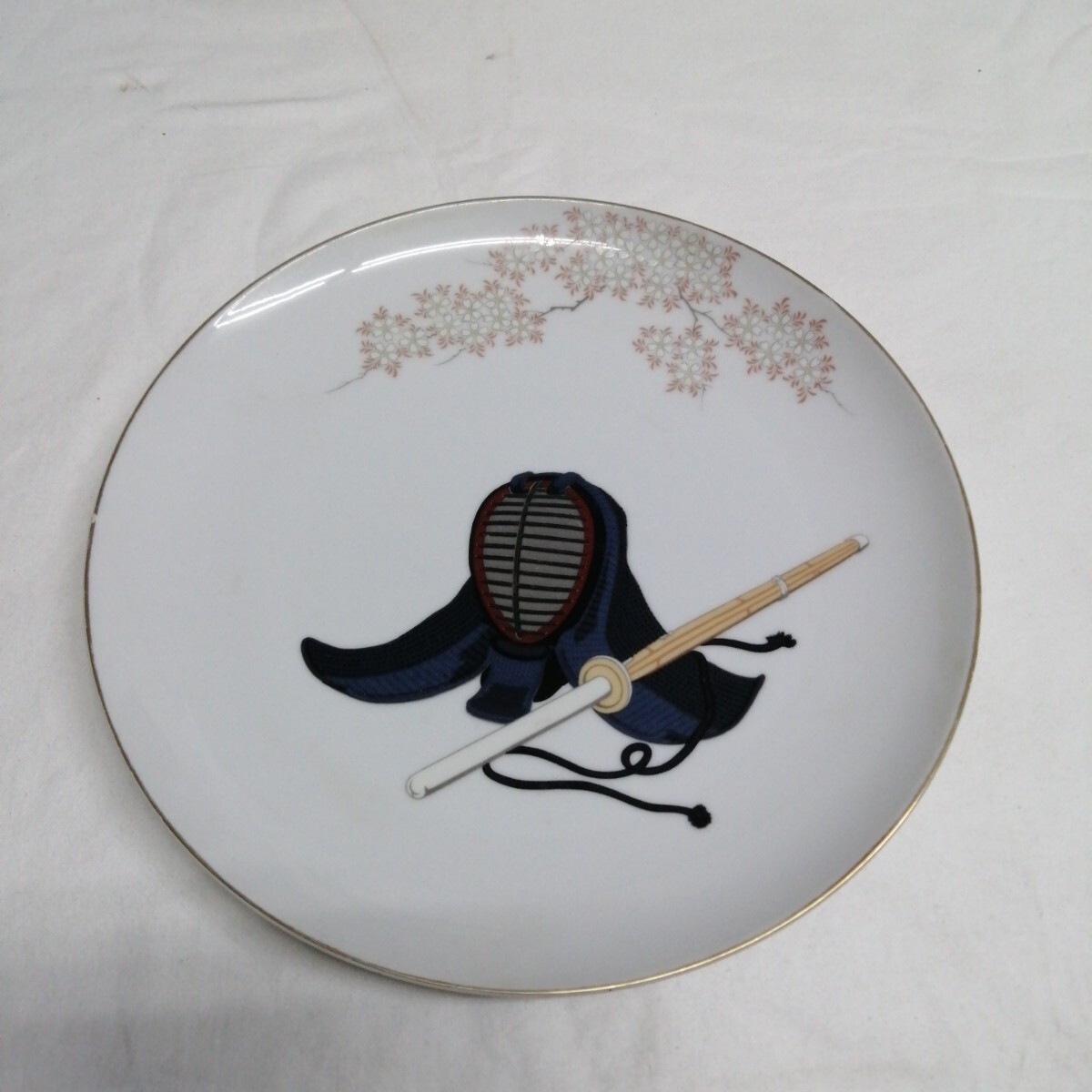 - 有田焼 深川製磁 飾り皿 有田焼 プレート 剣道面 武道 金縁 剣道 約直径26cm