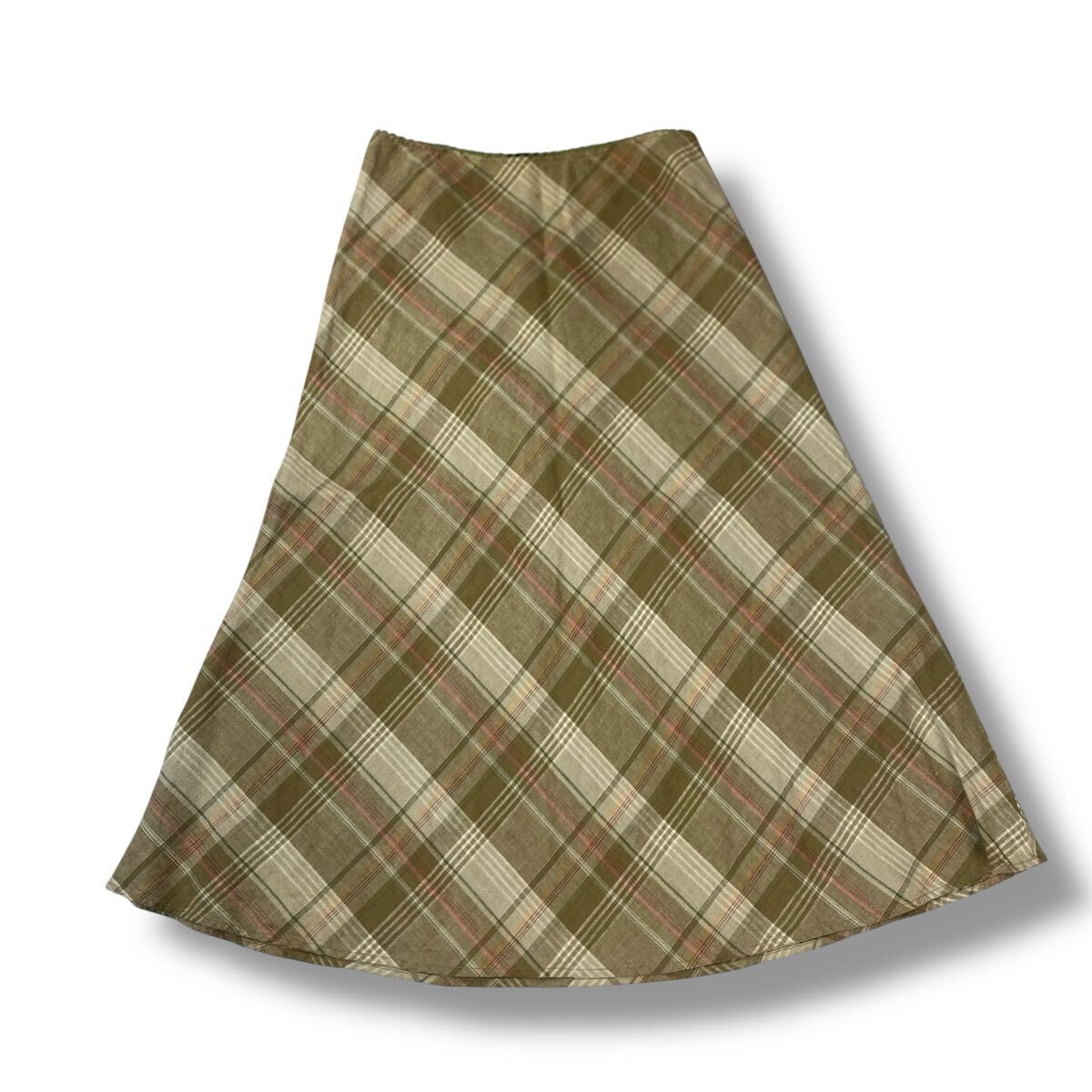 - TR0921【特価】EDDIEBAUER エディーバウアー リネン チェック柄 マーメイド スカート レディース 00s 古着 ベージュ XS