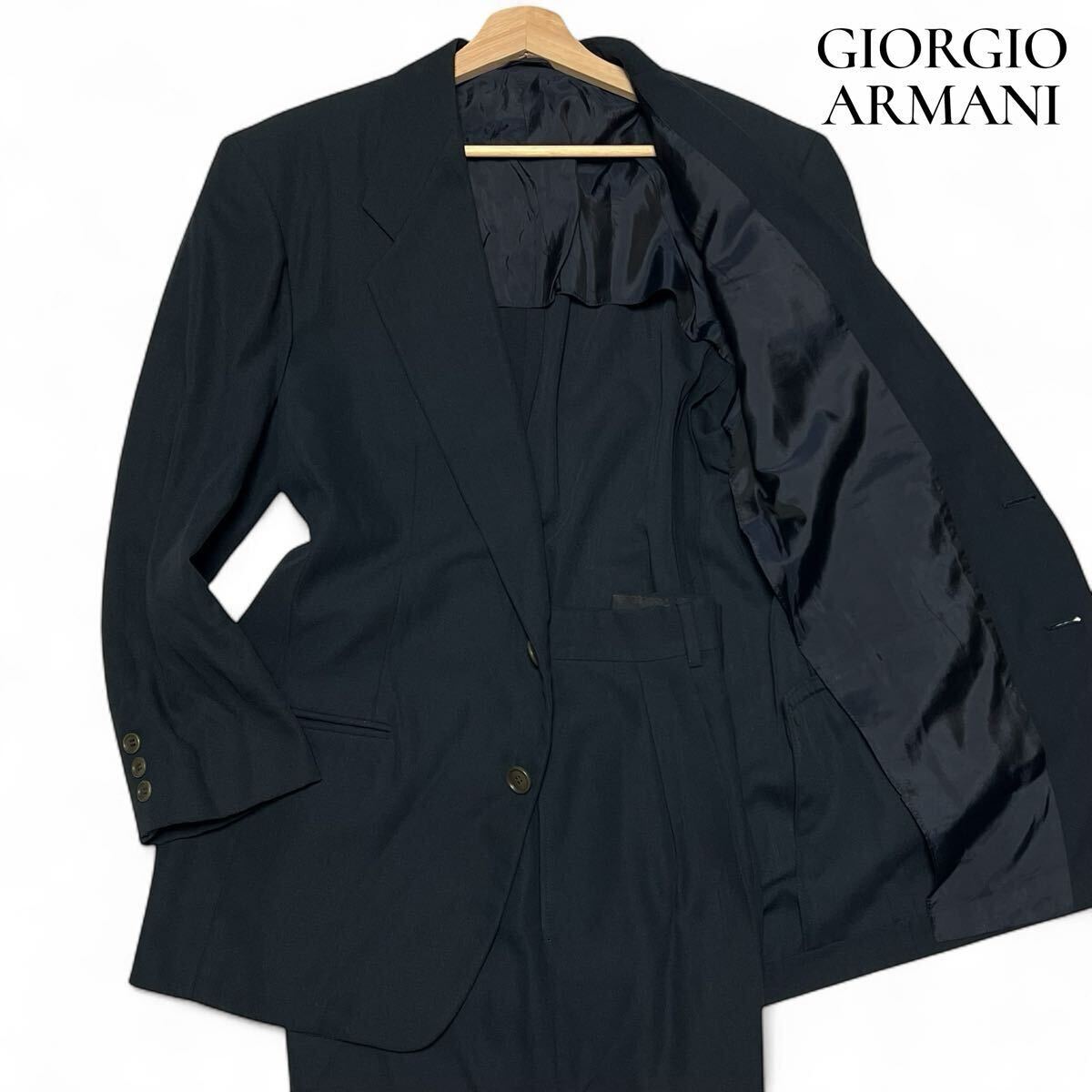 - 美麗品◎Mサイズ位!!ジョルジオアルマーニ【最高級 BORGO21】GIORGIO ARMANI セットアップ スーツ ブラック 背抜き 2B ウール◎メンズ