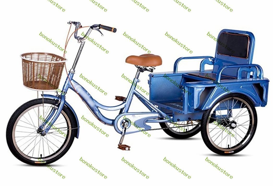 - 三輪自転車 大人の三輪車 20in成人自転車高炭素鋼フレーム3輪巡洋艦のバイク 後部座席の快適な自転車のバイクが高齢者に適した(Color:Blue)