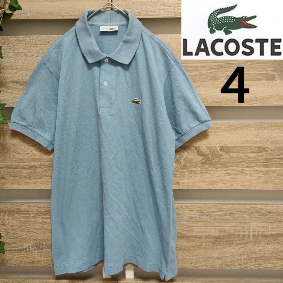 > LACOSTE(ラコステ)半袖ポロシャツ サイズ4 ライトブルー 美品(28)L-1212 ワンポイントロゴ刺繍 ■ネコポス発送!