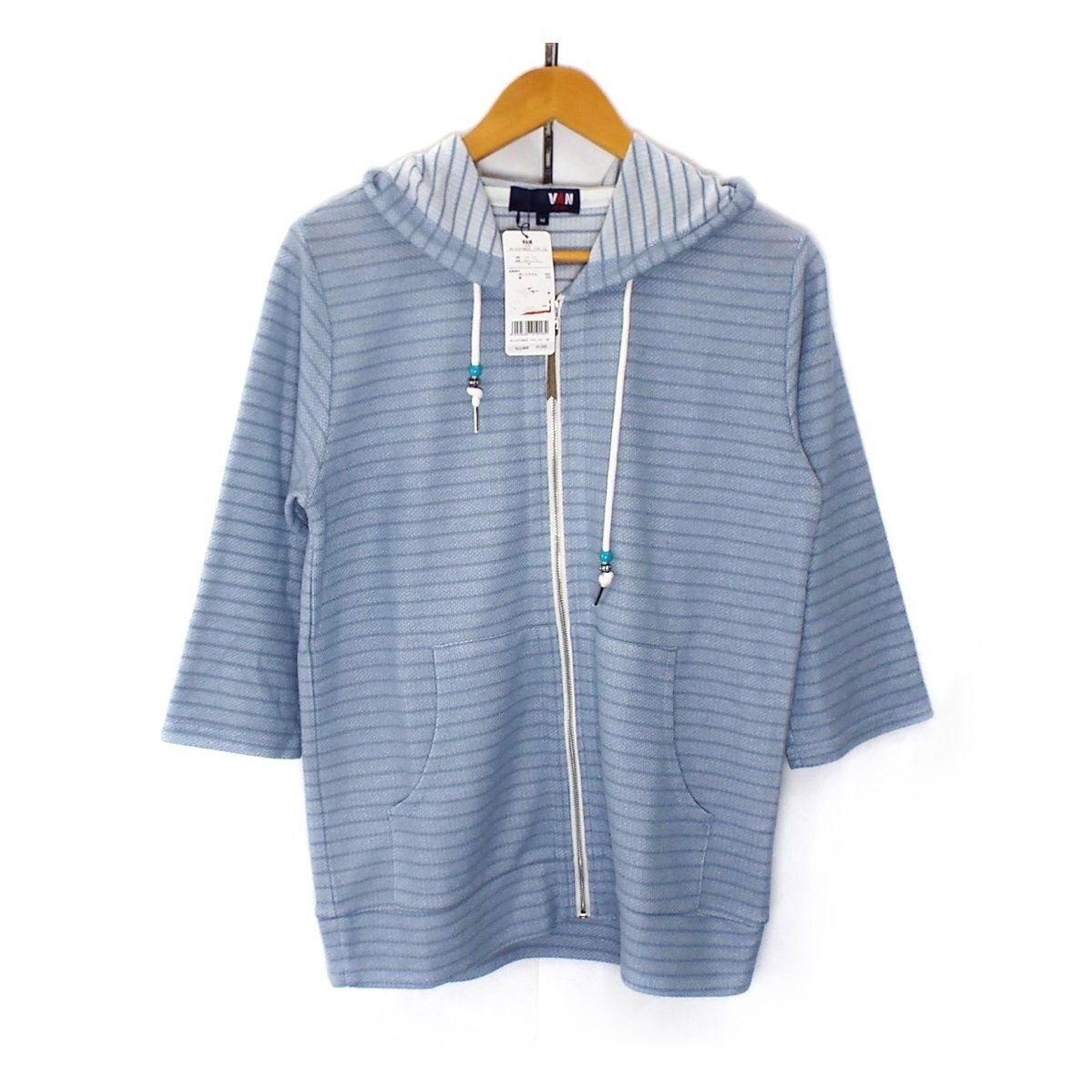 > T3505〇VAN CLUB/バンクラブ/ヴァンクラブ 半袖 フードパーカー ジップアップ ボーダー V373803/ブルー系/M/未使用/タグ付