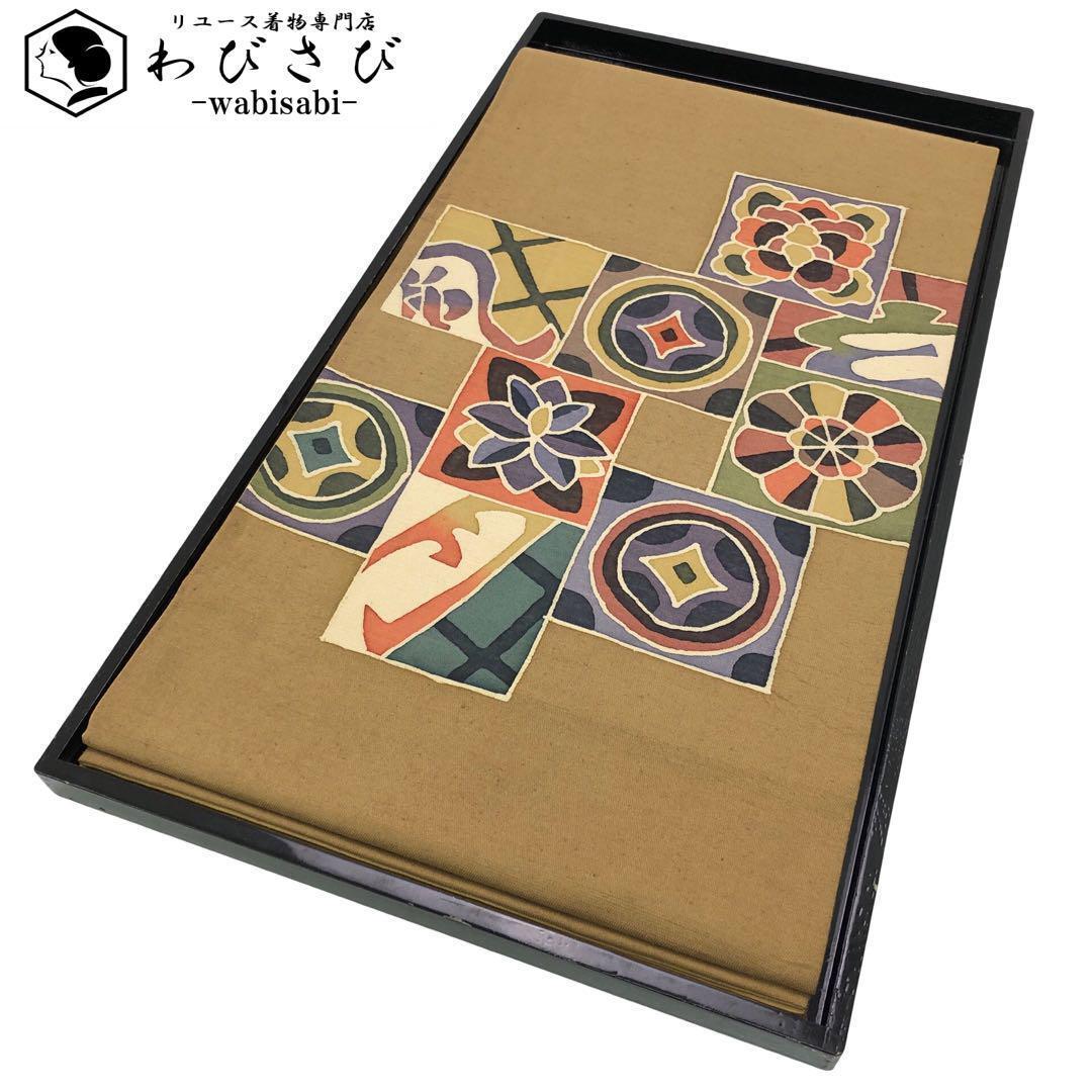 > 袋帯 紬 抽象花模様 桑染色 カジュアル O-4404 着物 きもの kimono 和服 和装 中古 リサイクル着物 【送料無料】
