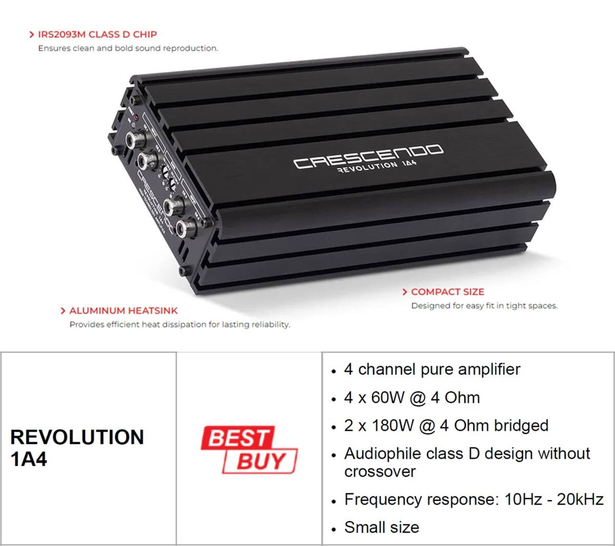 > 【保証付】【日本国内正規品】CRESCENDO(クレッシェンド) REVOLUTION 1A4 4chアンプ クラスDストレートアンプ