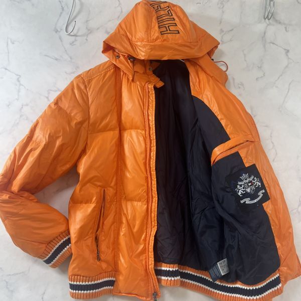 > XL~3L トミーヒルフィガー ダウンコート ダウンジャケット フード 2way 袖ざっくりニット 刺繍ロゴ オレンジ メンズ TOMMY HILFIGER B1511