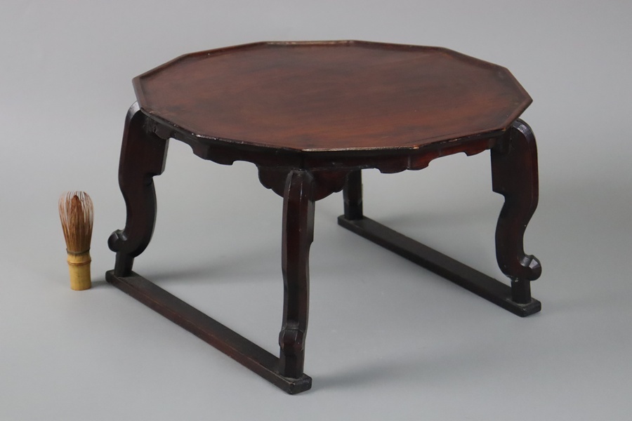 > 朝鮮美術 李朝時代 木造 李朝膳 十二角膳 幅42cm 四足膳 羅州盤 小盤 ソバン 座卓 文机 花台・バンダジ 細密細工 古美[d1012]