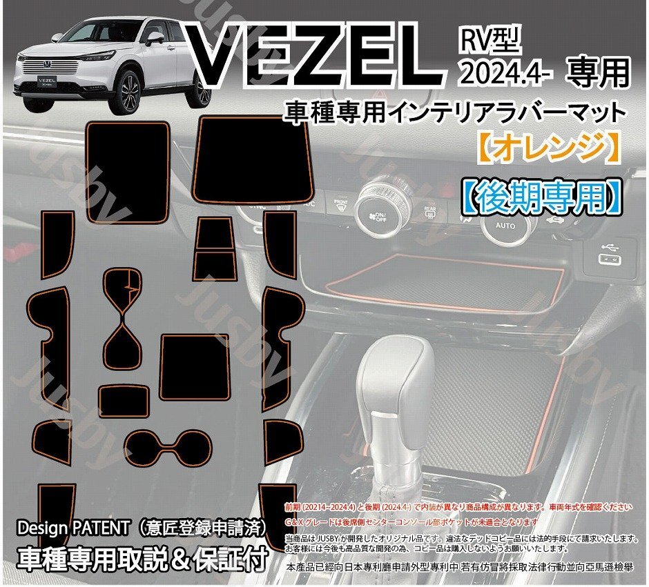 > (後期) ヴェゼル VEZEL RV型 インテリアラバーマット ゴムマット (オレンジ ORANGE) 傷異音防止 パーツ アクセサリー ホンダ RV系