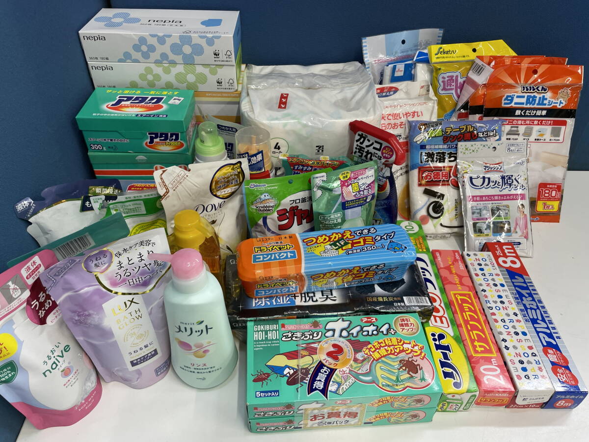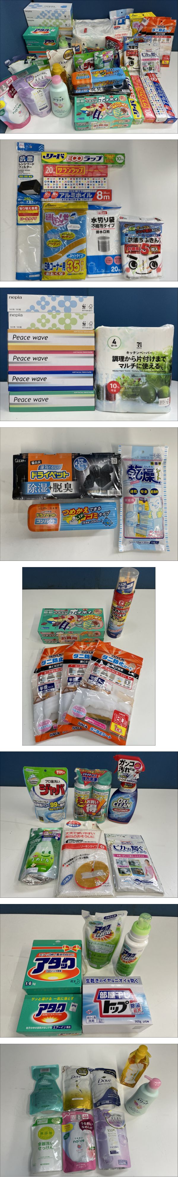 - 9-o79/4-120 日用品 大量まとめ 洗濯洗剤 シャンプー 清掃用品 箱ティッシュ キッチン用品 他 消耗品 未使用