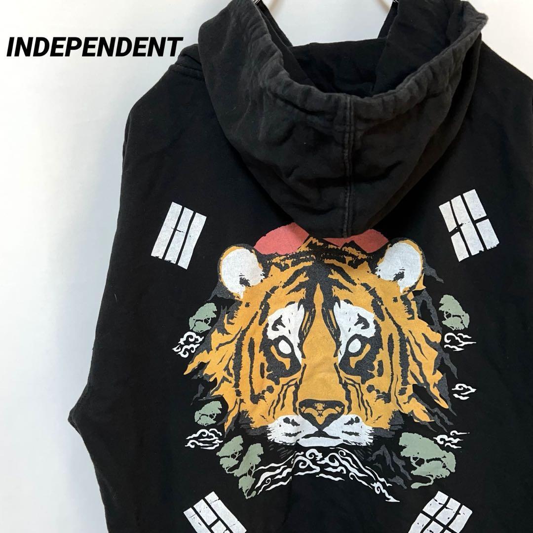 > N-5696 INDEPENDENT インディペンデント アメリカ古着 スウェット パーカー バックプリント タイガー 虎 トラ M メンズ