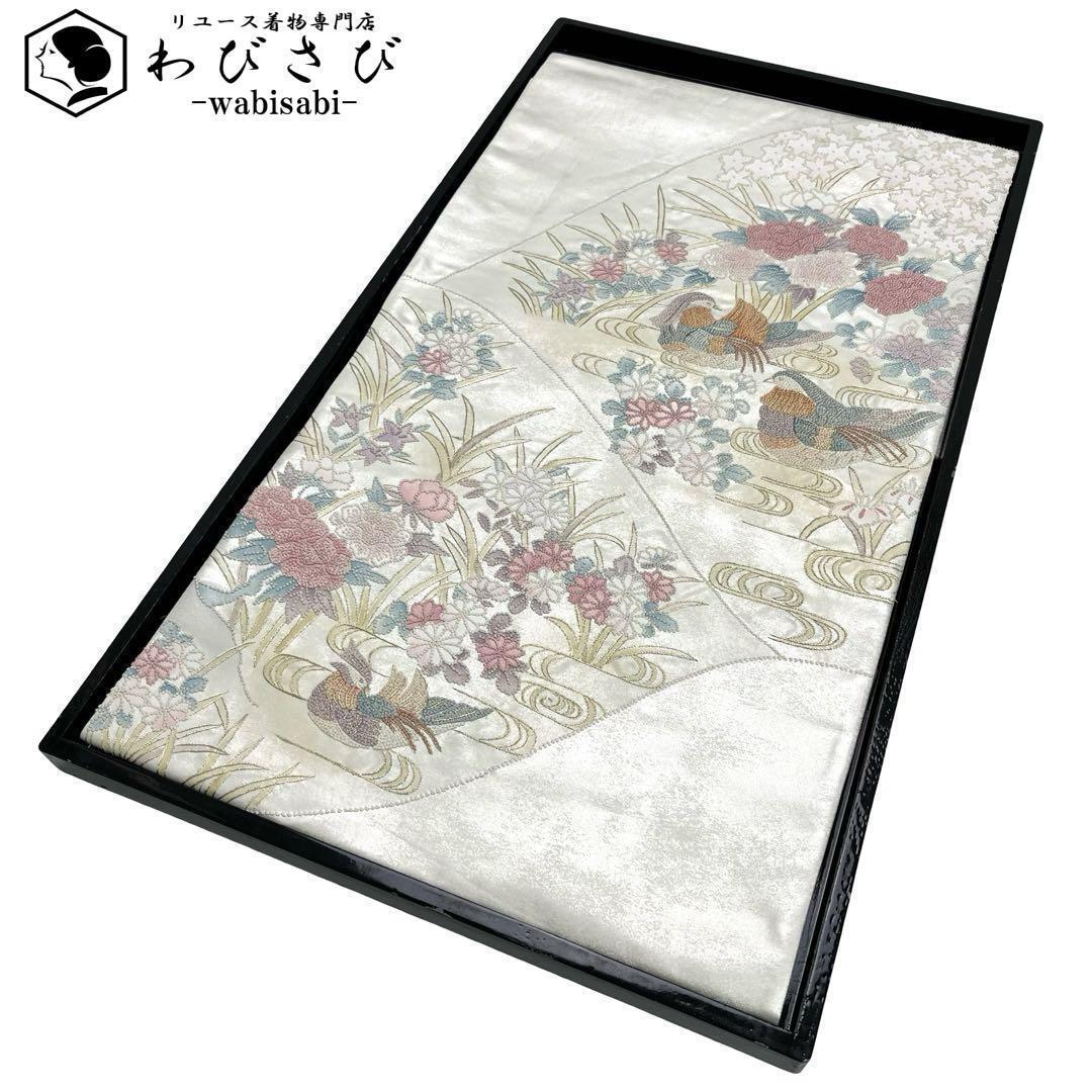 - 袋帯 総相良刺繍 花模様に水辺の鴛鴦 O-4436 着物 きもの kimono 和服 和装 中古 リサイクル着物 【送料無料】