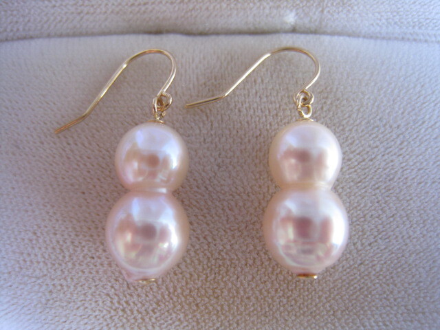 - [SAMU]綺麗!!ゆらゆら 照り上質天然双子あこや真珠7mmと8mm k18金ピアス 美品!