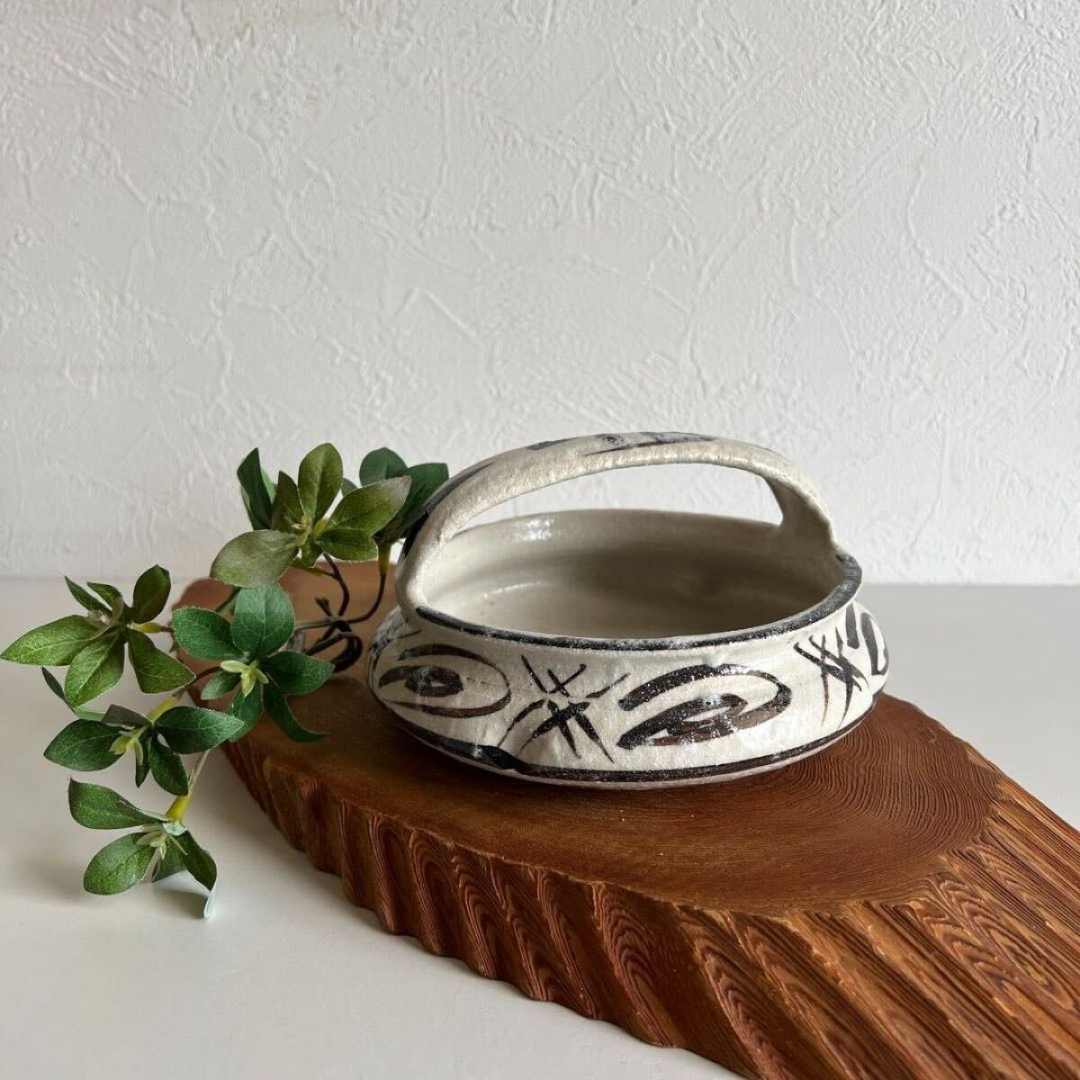 - wasabi k891 やきもの 陶器製 手付き菓子器 取っ手付きでバスケットのような形の鉢 食器のほかにも花器としてもお使いいただける逸品