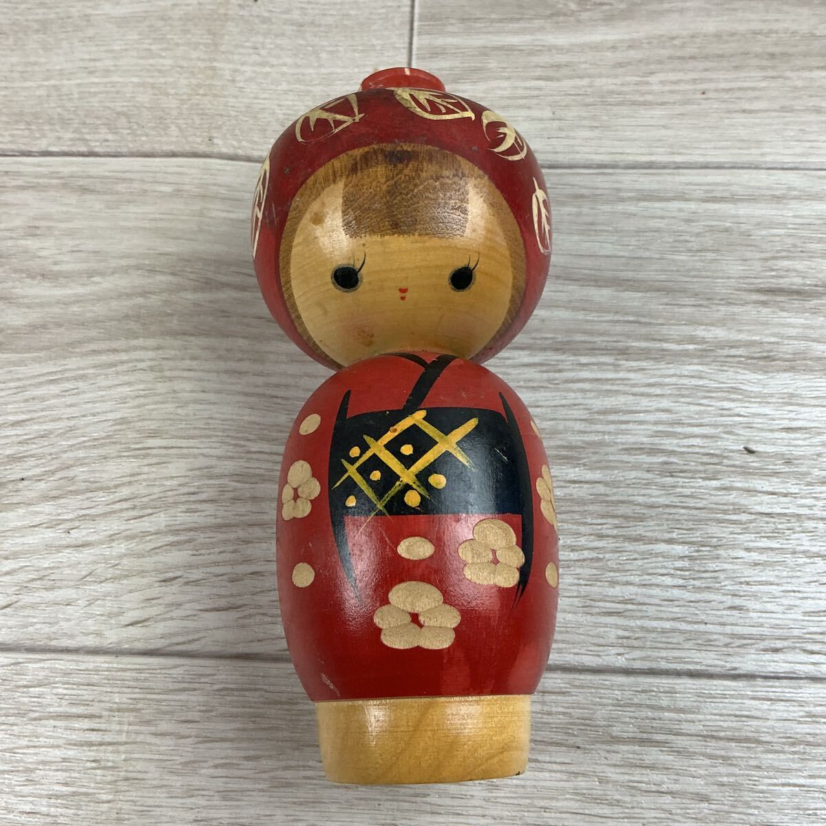 - t9364 りんごこけし 宮下はじめ作 工芸品 和風 置物 オブジェ 民芸 15.5cm 中古