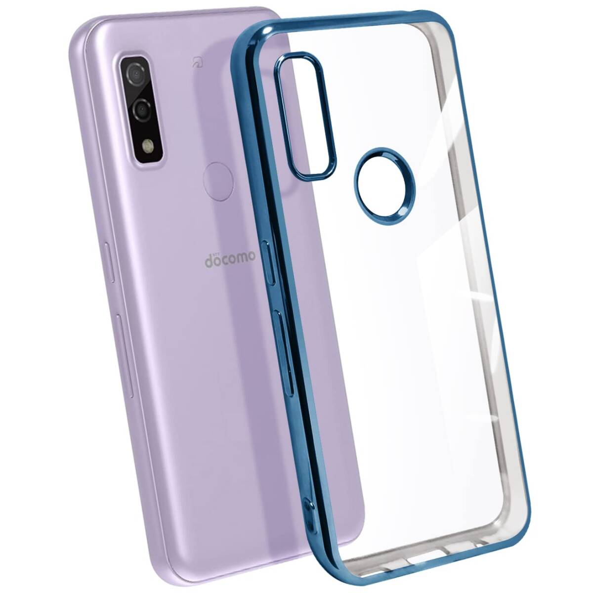 > 耐衝撃 軽量 メッキ加工 薄型 TPU ソフトケース 透明 FCG01 クリア 人気 ケース F-51B 保護カバー(ブルー) W