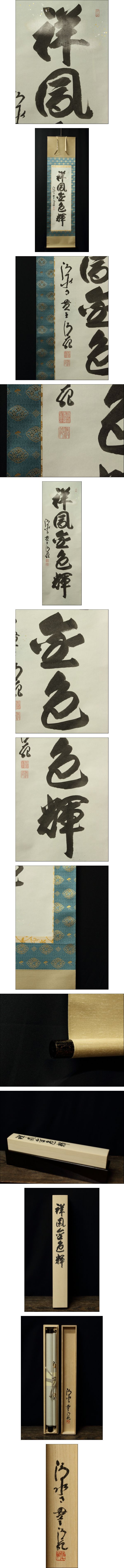 - ◆◇清水寺貫主 森清範 ( Kyoto,1940‐ ) 一行書「瑞雲伴五彩」現代の高僧 漢検 今年の一字揮毫 半切立 現代作家新作掛軸◇◆JY2120