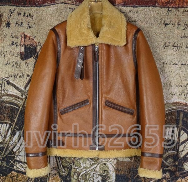 - 人気推薦★高級感 B-3 ブラウン ムートン フライトジャケット ボマー ボンバーイタリアンレザー 羊革