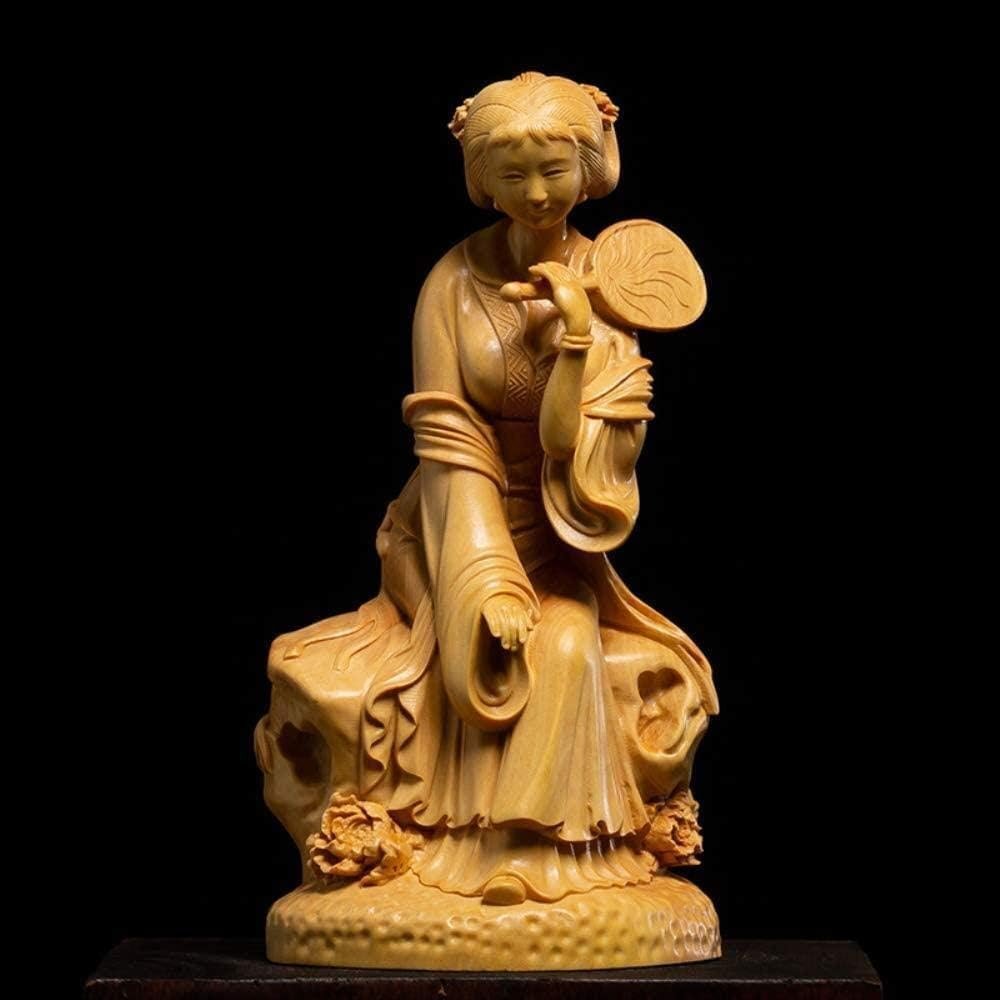 - フィギュア彫刻 家の装飾の装飾の置物中国の古典的な漢服の美しさの彫刻ツゲの木の彫刻家の装飾無垢材のリビングルームラッキースタチュー