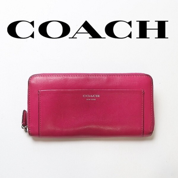 > 【HA417】◆COACH コーチ レザー ラウンドファスナー ウォレット 長財布 マゼンタ