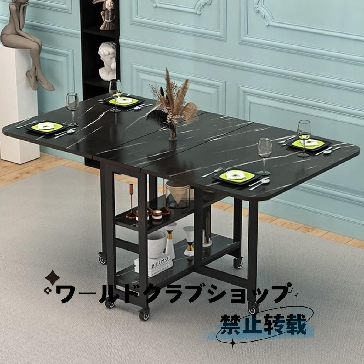 - 折りたたみダイニングテーブル 伸長式ダイニングテーブル ロック可能なホイール付きドロップリーフダイニングテーブル(120x80cm)