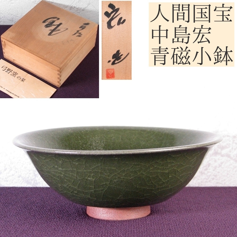 - 人間国宝 中島宏作 青磁小鉢 幅:15.5cm 美品 共箱・栞付/25i027
