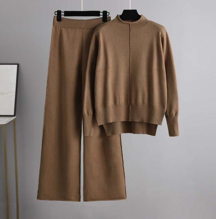 - 344 パンツスーツladiesレディース ◇ 魅惑Styleセクシー ◇ニット素材 上質 秋冬 コーヒー
