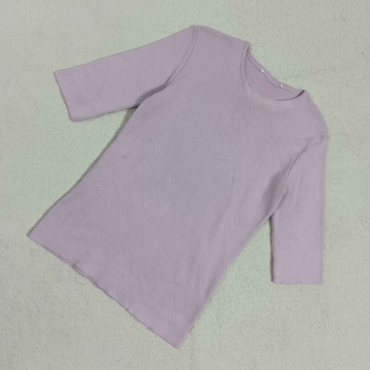 - コットンニットぽい 5分丈袖 トップス カットソー ピンク ★1000