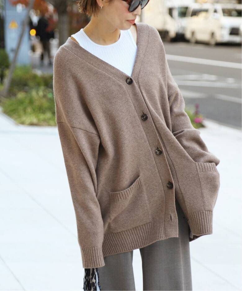 > 美品 Deuxieme Classe Big Cardigan オーバー ルーズ カーディガン モカ ブラウン ベージュ Vネック ニット