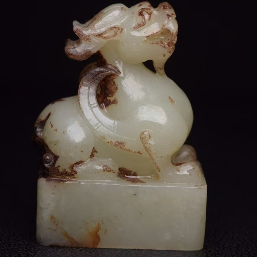 > 和田玉 秘藏 清代 神龍玉璽印鑑 印章 古印材 印鑑の方古玉 白玉 唐物 古玉彫 天然石 稀少珍品 古美術 古賞物 古置物 旧蔵 9.22