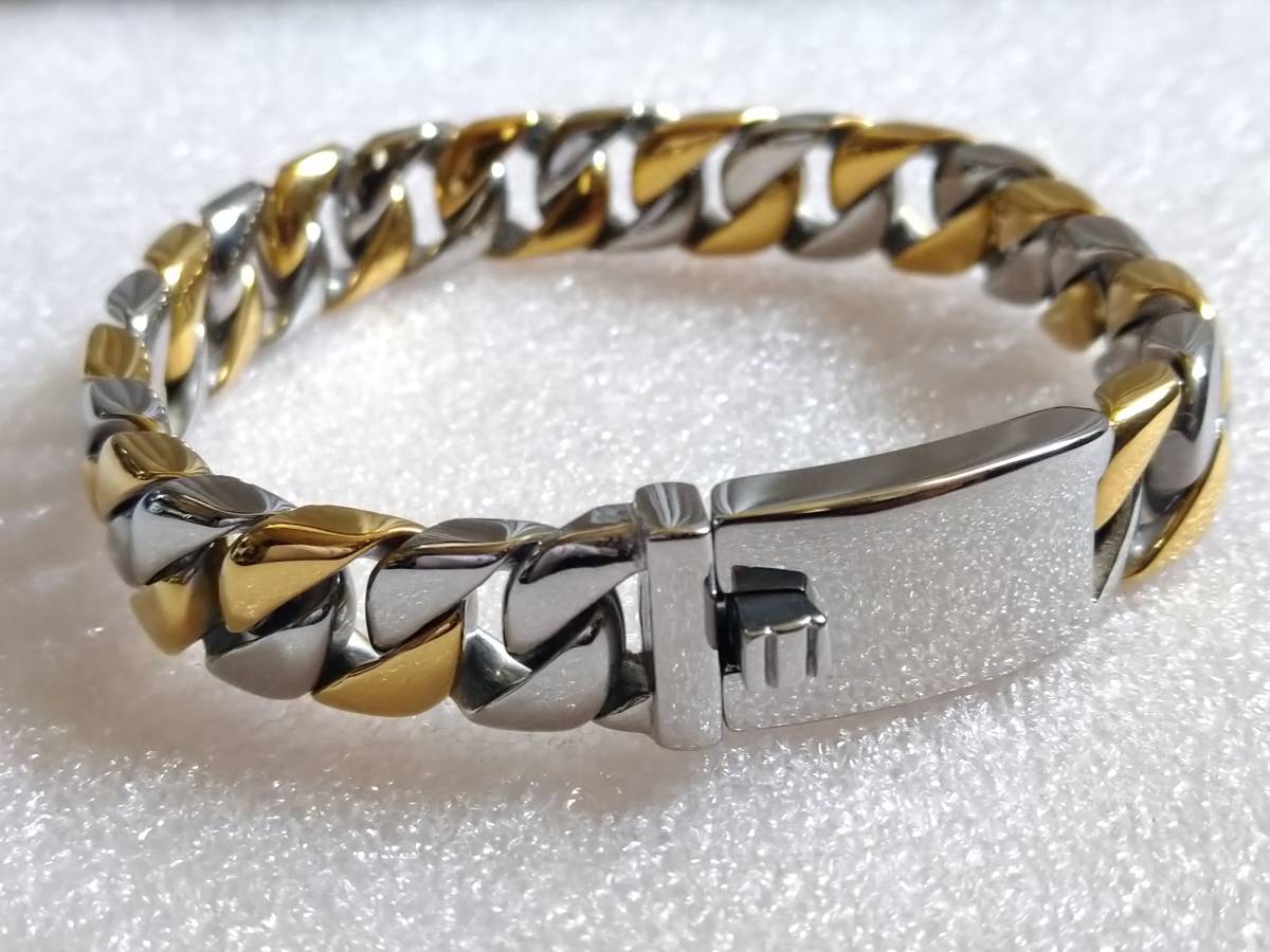 - 【新品】メンズブレスレット コンビ・ゴールド鏡面 12mm 316L ステンレス