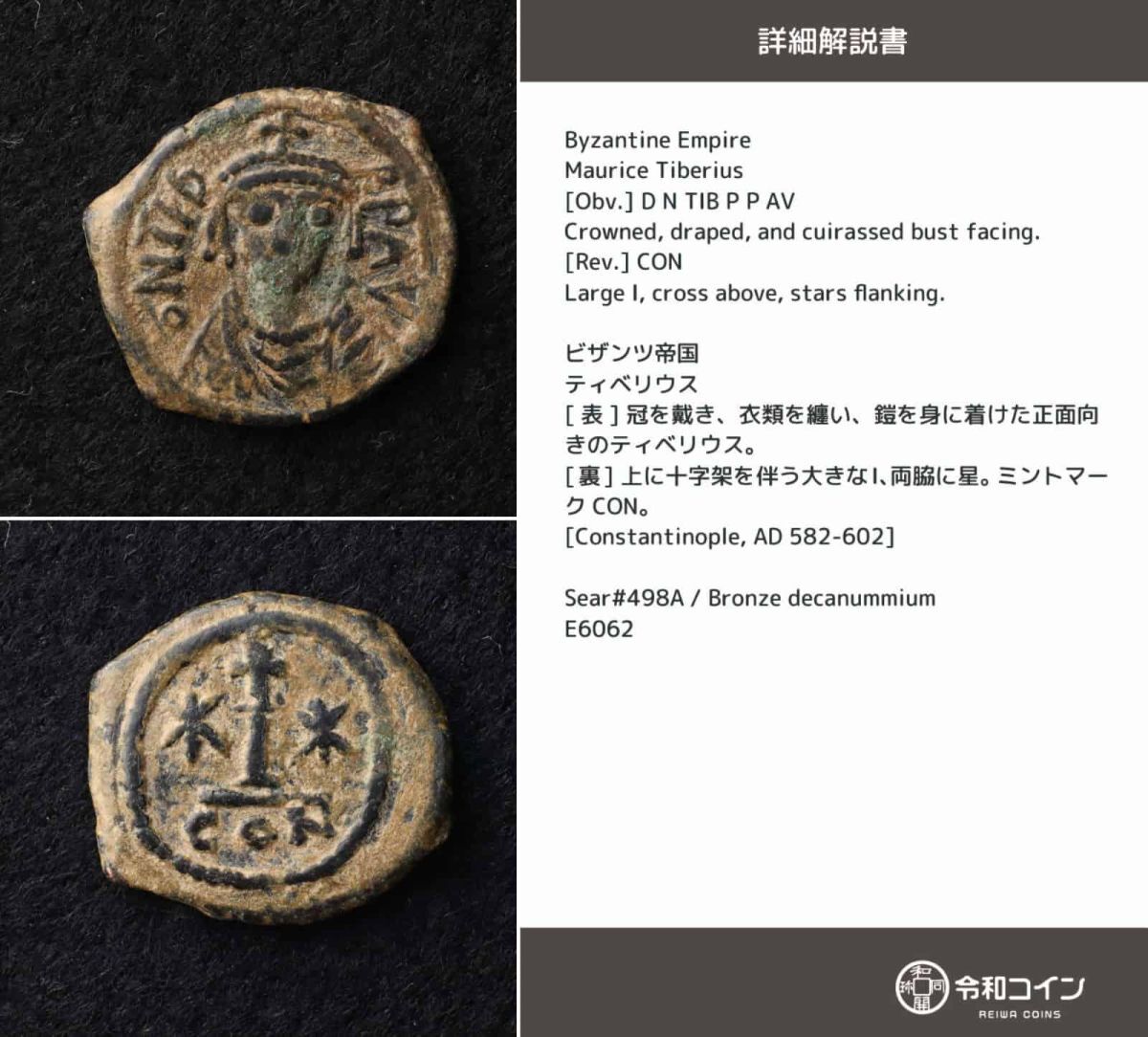 > *[令]マウリキウス・ティベリウス ビザンツ帝国コイン【詳細説明カード付】古代ギリシャ,古代ギリシア,古代ローマ[E6062]7r6