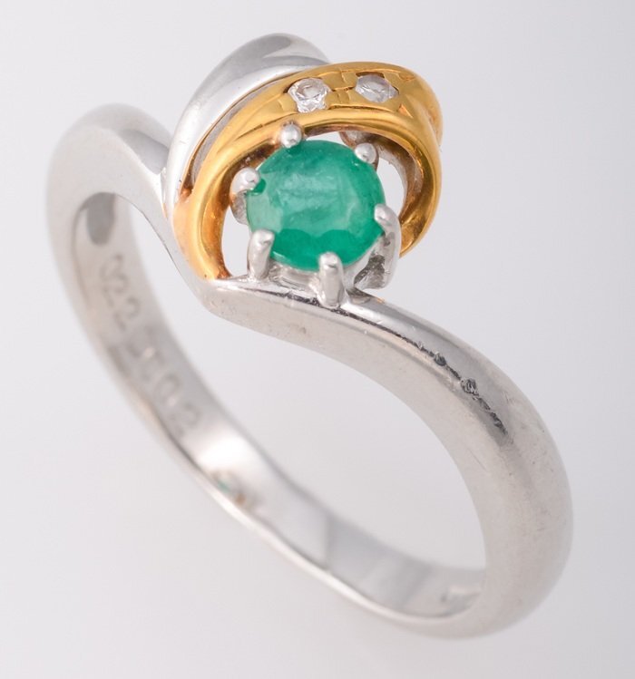 - Pt850/K18 エメラルド・ダイヤモンド 指輪 品番e23-177