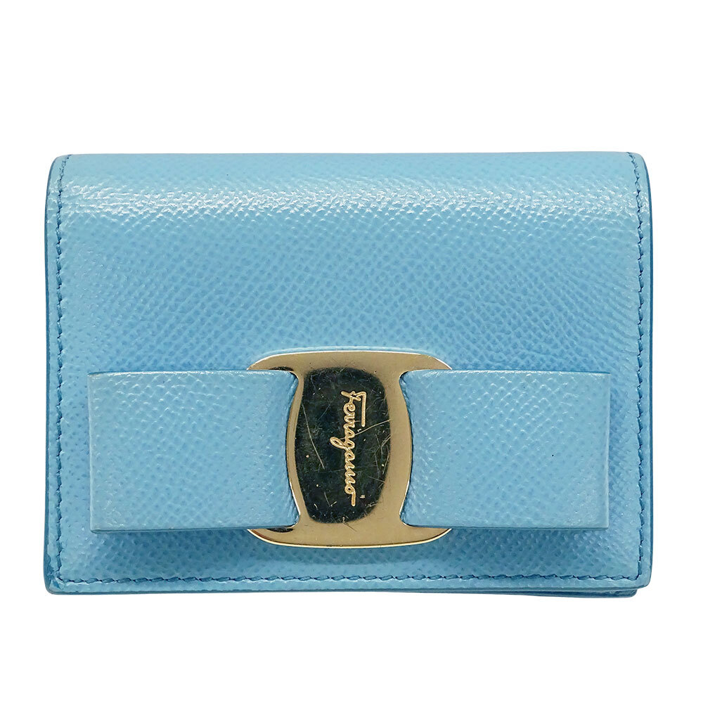- フェラガモ Ferragamo 財布 レディース ブランド ヴァラリボン 二つ折り財布 レザー ライトブルー コンパクトウォレット ミニ財布 おしゃれ