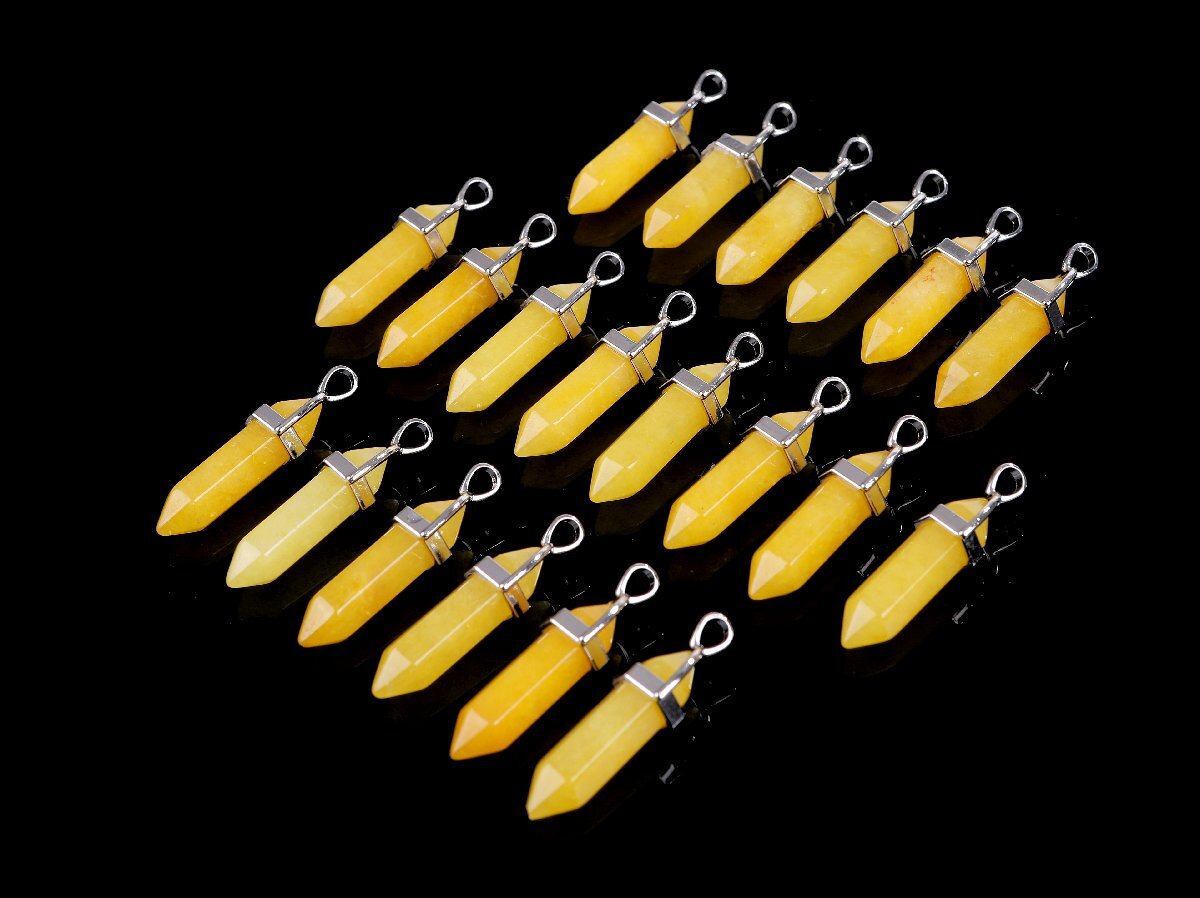 > ゆうパケ発送★おまとめて大量 天然石 トパーズ 六角柱ペンダントトップ 20点セット チャーム まとめ売り アクセサリーパーツ MSY-Nh14